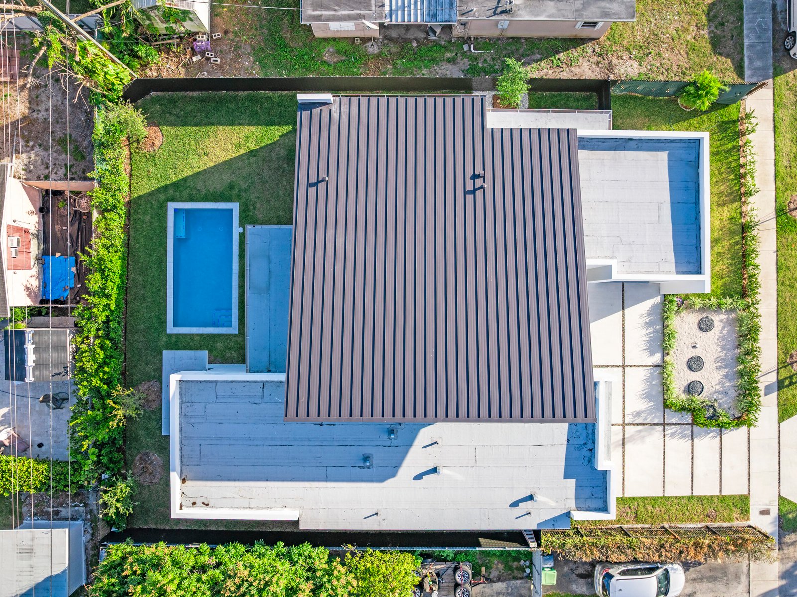 Indulge in elevated modern living within this striking 3,200-square-foot concrete masterpiece, defined by dramatic 22-foot ceilings and architectural sophistication.