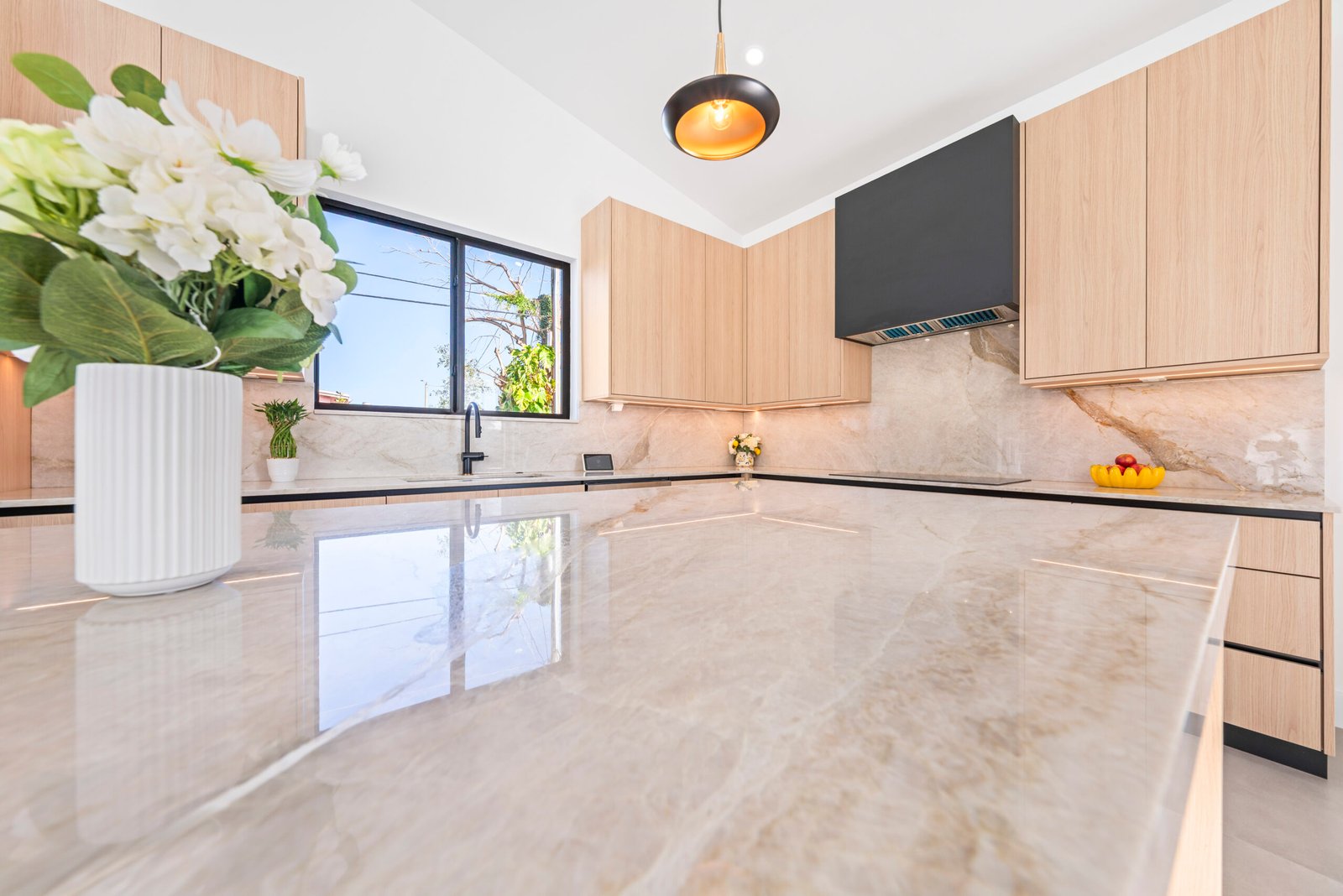 Thoughtfully designed for both comfort and grandeur, the residence features four generously proportioned bedrooms, three impeccably appointed bathrooms, and expansive living spaces bathed in natural light. At the heart of the home, a chef-inspired gourmet kitchen showcases bespoke wood cabinetry and exquisite Taj Mahal quartz countertops—an artful fusion of refined beauty and enduring performance.
